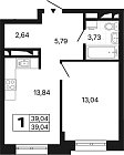 39.04 м2 19 этаж