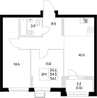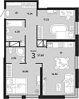 Жилая 39.07 м2