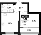 Жилая 10.97 м2