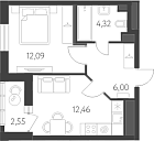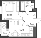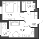 Жилая 12.09 м2