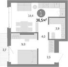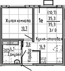 35.3 м2 14 этаж