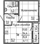 34.4 м2 11 этаж