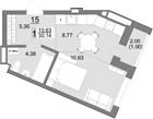26.62 м2 15 этаж