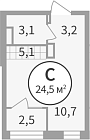 24.97 м2 13 этаж
