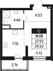 28.6 м2 13 этаж