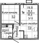 35.4 м2 11 этаж