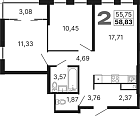 55.54 м2 18 этаж