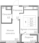Жилая 22.64 м2
