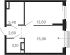 Жилая 22.97 м2