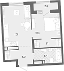 Жилая 21.6 м2