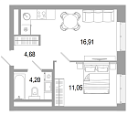 Жилая 22.92 м2