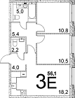 56.1 м2 21 этаж