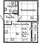 34 м2 20 этаж