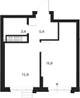 34.3 м2 9 этаж