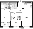 58.88 м2 15 этаж