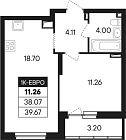 38.07 м2 6 этаж