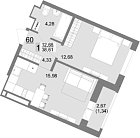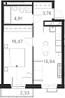 43.82 м2 16 этаж