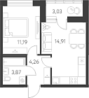 36.75 м2 15 этаж