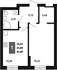 41.08 м2 13 этаж