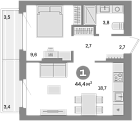 Жилая 41.6 м2