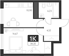 34.3 м2 23 этаж