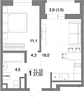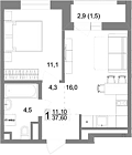 36.1 м2 16 этаж