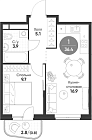 45.87 м2 16 этаж
