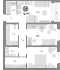72.28 м2 6 этаж