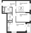 61.55 м2 6 этаж