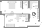 54.7 м2 20 этаж
