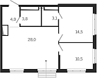Жилая 32.8 м2