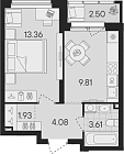 Жилая 13.36 м2
