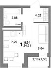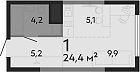 24.38 м2 4 этаж