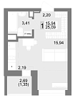 17.82 м2 15 этаж