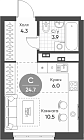 24.1 м2 16 этаж