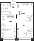Жилая 42.62 м2