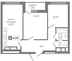 Жилая 43.3 м2